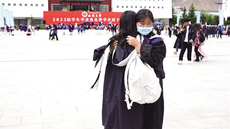現(xiàn)場,畢業(yè)生們依依不舍。隨著西藏大學校歌的響起,該校2022屆學生畢業(yè)典禮暨學位授予儀式落下帷幕,畢業(yè)生們即將帶著自己的成長感悟離開西藏大學,開始新的征程。