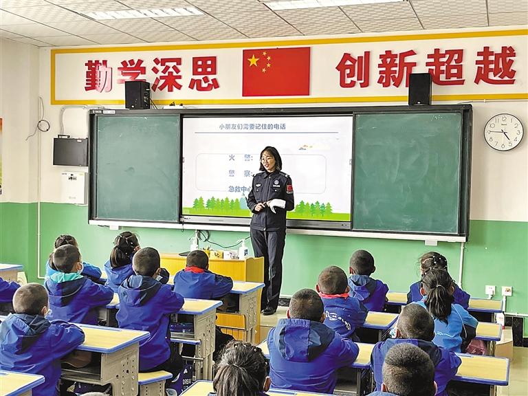 圖為日喀則邊境管理支隊帕里邊境派出所民警走進學校宣講法律知識。記者 趙文慧 通訊員 白瑪倉覺 攝