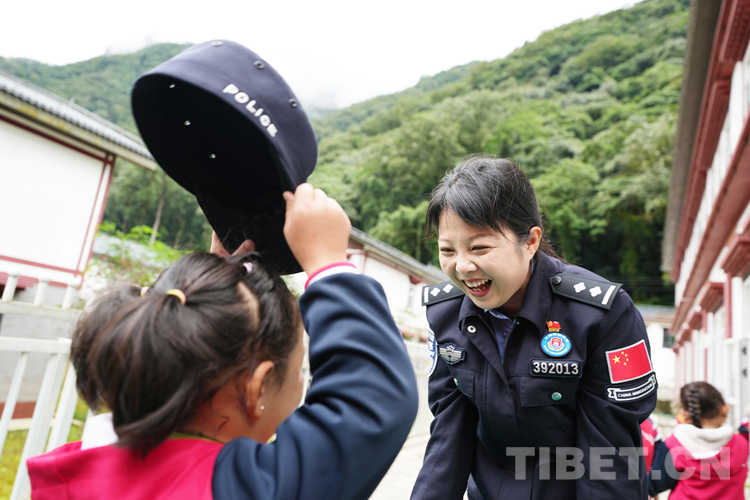圖為亞東出入境邊防檢查站民警與龐達(dá)村雙語幼兒園小朋友一起玩耍