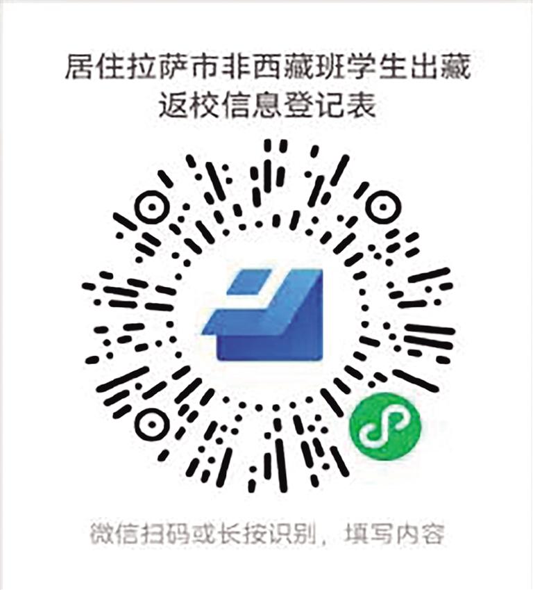 根據(jù)拉薩市委、市政府和自治區(qū)教育廳部署安排,為準(zhǔn)確掌握學(xué)生出藏行程規(guī)劃,為民航、鐵路等交通部門調(diào)配運力提供參考依據(jù),拉薩市教育局需精準(zhǔn)掌握居住在拉薩市的區(qū)外就讀西藏籍大學(xué)生、區(qū)外非西藏班就讀西藏干部職工子女、區(qū)外就讀進城務(wù)工人員子女、旅居區(qū)內(nèi)的區(qū)外學(xué)生出藏相關(guān)信息,請廣大家長、學(xué)生積極配合,掃描以下二維碼,填報出行信息;下載健康監(jiān)測檔案,于出藏7天前填寫健康監(jiān)測。
