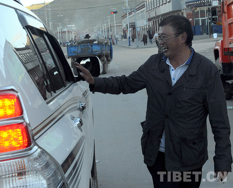 這是時任班戈縣副縣長李正斌在縣城街頭與乘車熟人打招呼(唐召明2012年8月2日攝)