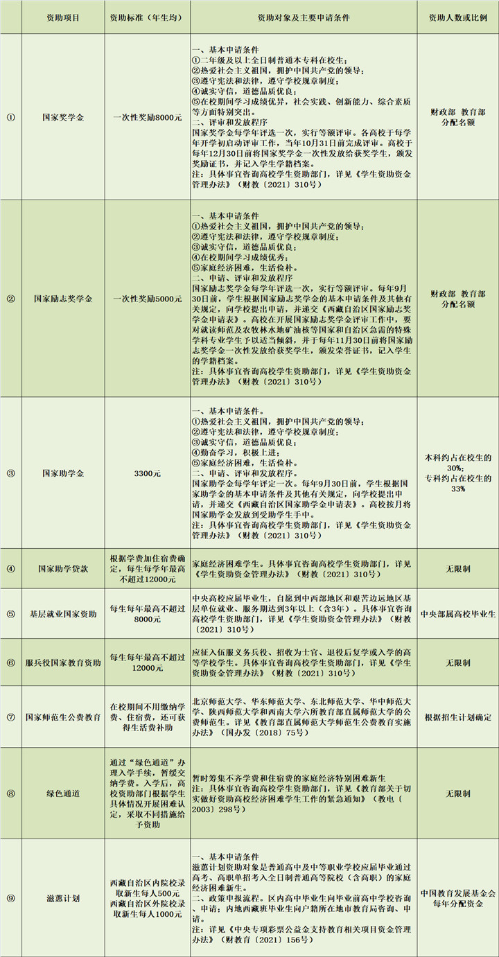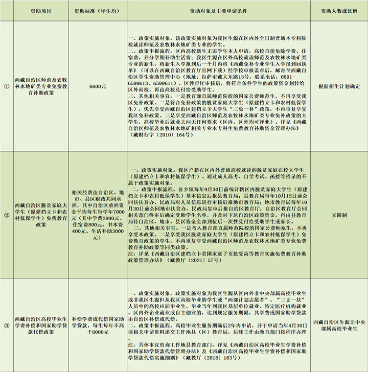 以下為西藏自治區(qū)本??平逃A段學生資助政策簡介和服務熱線詳細情況: