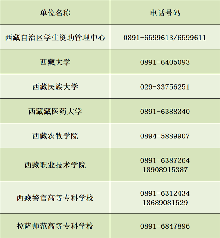 西藏自治區(qū)學生資助服務熱線號碼