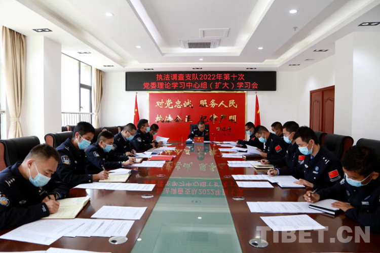 圖為西藏邊檢總站執(zhí)法調(diào)查支隊黨委理論學(xué)習(xí)中心組專題學(xué)習(xí)黨的二十大精神 攝影:劉明陽