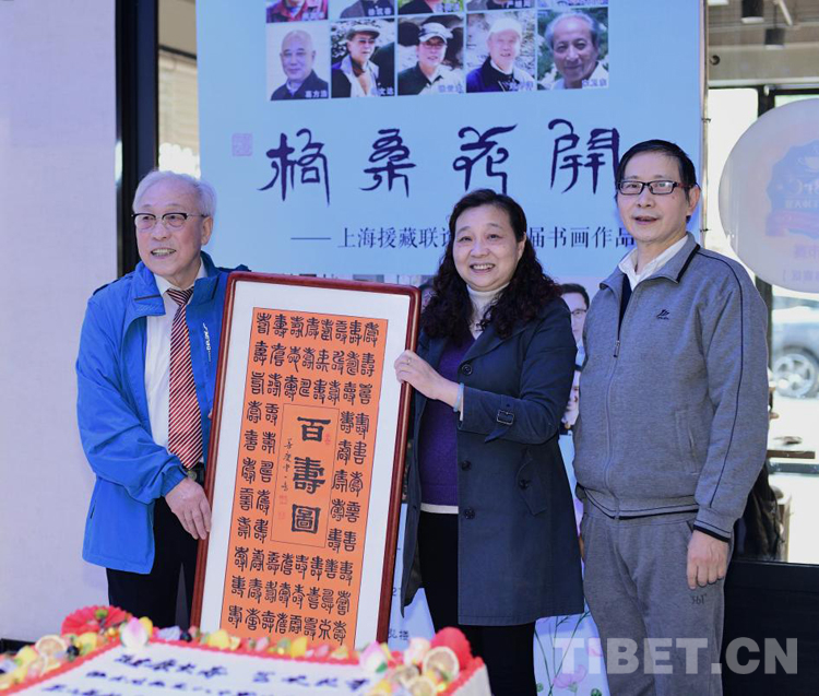 開幕式當天,恰逢張先生八十大壽,書畫展組委會特地送上蛋糕祝賀,徐匯區(qū)書畫協(xié)會也以一幅《百壽圖》向張先生表達敬意,祝他“健康長壽、藝術長青”。(中國西藏網 文/葛榮江)