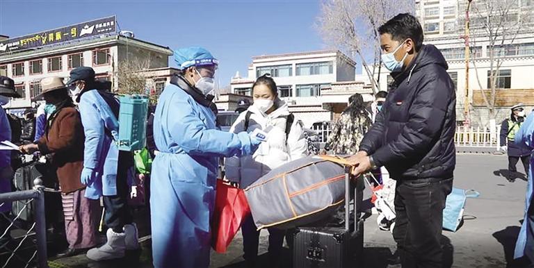 “老師好!”“同學(xué)好!”早已等候在校門口的老師一邊向?qū)W生打招呼,一邊檢查學(xué)生的核酸檢測結(jié)果證明以及線下復(fù)課同意書簽字情況。另一部分老師則仔細(xì)對學(xué)生的行李進(jìn)行消殺。拉薩市第八中學(xué)德育副校長昌決表示,返校期間,入校人員必須持有48小時核酸檢測陰性證明,并落實(shí)好門口的“一測一掃兩檢查”制度,把好疫情防控第一關(guān)。