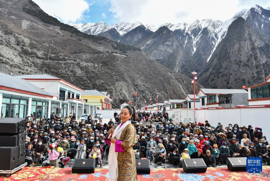 當(dāng)日,西藏山南市隆子縣藝術(shù)團(tuán)來到隆子縣斗玉珞巴民族鄉(xiāng)繞讓搬遷安置點(diǎn)開展迎接藏歷新年文藝演出。據(jù)悉,該安置點(diǎn)的群眾于2023年1月上旬完成搬遷入住,他們將在新家迎接即將到來的藏歷新年。