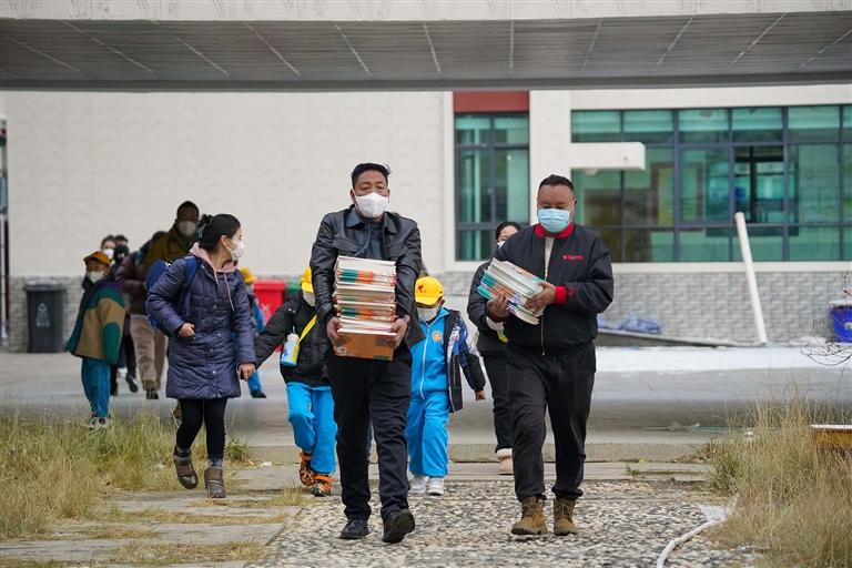 在拉薩市第八中學(xué)校門口,學(xué)生們滿懷希冀與欣喜,來(lái)到闊別已久的校園,校園內(nèi)恢復(fù)了往日的熱鬧。學(xué)生們?cè)诩议L(zhǎng)的陪同下背著行囊,拖著行李箱回到各自寢室。衛(wèi)生大掃除是必不可少,他們對(duì)床鋪和個(gè)人用品進(jìn)行了整理。隨后,同學(xué)們有序完成了新書本的領(lǐng)取,感受著翻開書本泛出的陣陣墨香。與自己的姓名一起簽在書本扉頁(yè)的還有新學(xué)期的美好愿景。