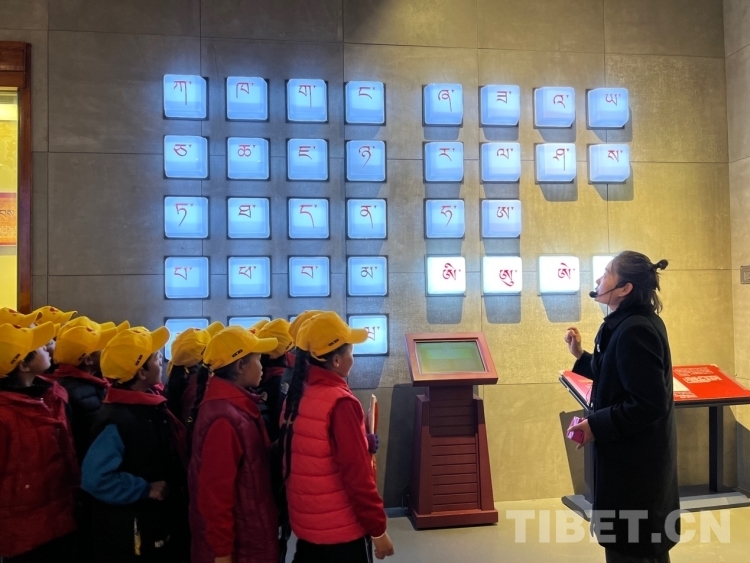 走進(jìn)“藏地智慧”,學(xué)生們一眼認(rèn)出藏文創(chuàng)始人吞彌·桑布扎,大家異口同聲回答講解員的問(wèn)題說(shuō):“這是吞彌·桑布扎?!钡玫街v解員的肯定、并向他們講述背后的相關(guān)歷史后,學(xué)生們聽(tīng)得很入迷,也更有信心面對(duì)接下來(lái)的問(wèn)題。藏文的信息化使得這一古老文字煥發(fā)著全新而旺盛的生命力,在這里學(xué)生們欣賞藏文在智能手機(jī)、電腦、多功能點(diǎn)讀機(jī)等智能電子設(shè)備內(nèi)“走動(dòng)”、傳統(tǒng)農(nóng)牧業(yè)的模擬場(chǎng)景和現(xiàn)代化的機(jī)械設(shè)備圖、藏醫(yī)藥材、藏香藏紙制造和制鹽過(guò)程等獨(dú)具特色的藏族傳統(tǒng)手工藝,也能很好的回答講解員提出的問(wèn)題,現(xiàn)場(chǎng)互動(dòng)氣氛熱烈。“這種活動(dòng)我們學(xué)校不會(huì)常有,當(dāng)孩子們聽(tīng)到要去拉薩時(shí)像是要過(guò)年那樣高興,一路上問(wèn)這問(wèn)那地充滿好奇。”多白鄉(xiāng)小學(xué)的帶隊(duì)老師羅珍介紹:“這次參加活動(dòng)的這些學(xué)生都是三、四、五年級(jí)的學(xué)生,個(gè)個(gè)品學(xué)兼優(yōu)?!?/p>