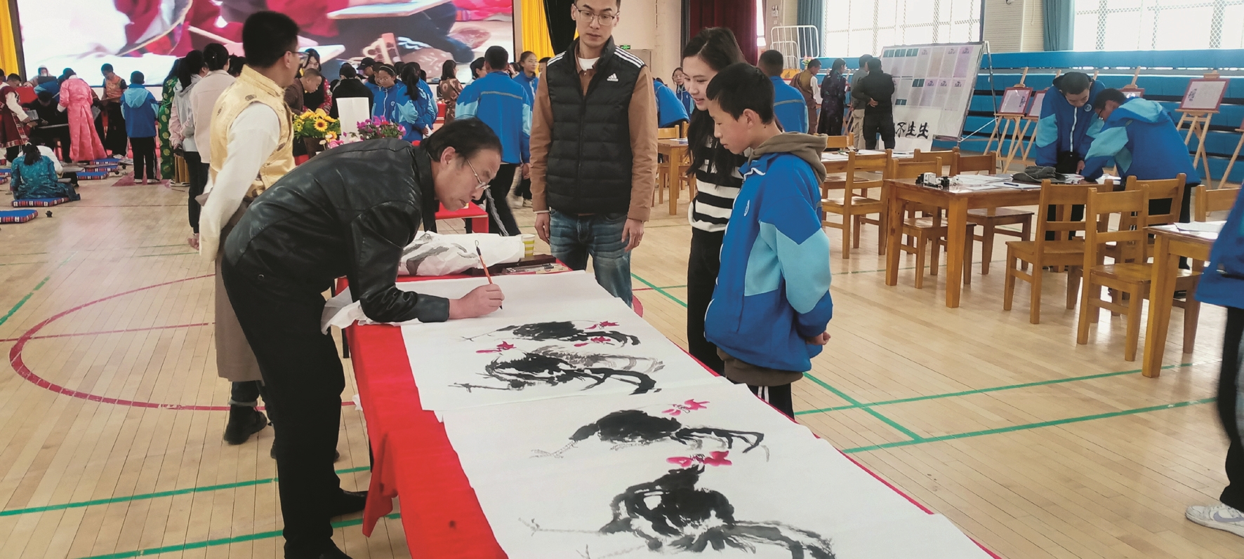 活動(dòng)為拉薩市柳梧初級(jí)中學(xué)愛(ài)好書(shū)法的師生提供了一個(gè)展現(xiàn)自我價(jià)值的平臺(tái),為充分展現(xiàn)中國(guó)書(shū)畫藝術(shù)魅力、繼承和弘揚(yáng)傳統(tǒng)的國(guó)粹文化藝術(shù),藝術(shù)家們揮毫潑墨,現(xiàn)場(chǎng)演繹國(guó)畫和書(shū)法經(jīng)典,以提升廣大師生的藝術(shù)修養(yǎng)和審美情趣,激發(fā)大家研學(xué)書(shū)法的興趣和愛(ài)好。