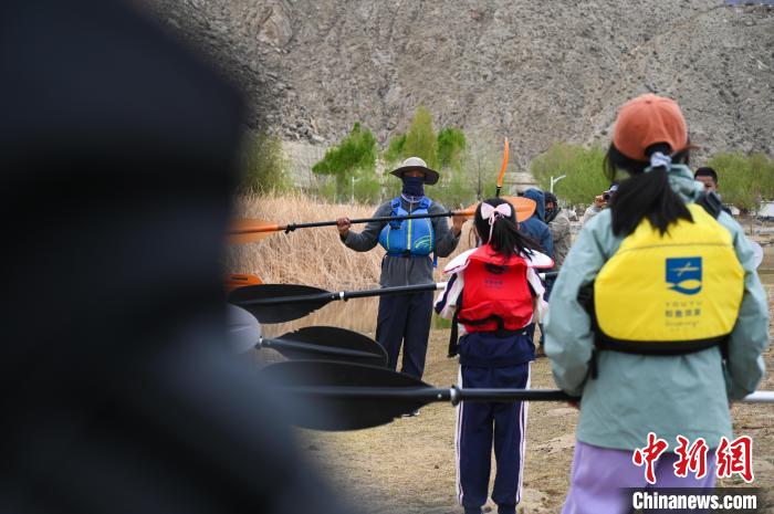 圖為皮劃艇教練向體驗者講授皮劃艇操作技術(shù)?!≮w朗 攝
