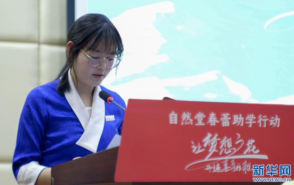 西藏大學(xué)2021級(jí)漢語(yǔ)言文學(xué)班學(xué)生德慶旺姆作為受資助學(xué)生代表發(fā)言時(shí)說:“國(guó)家和社會(huì)的各類資助給我和我的家庭帶來很大幫助,真誠(chéng)感謝伽藍(lán)集團(tuán)、學(xué)校、老師、同學(xué)和所有幫助我的人,我會(huì)在你們的支持和關(guān)愛中懂得感恩,學(xué)會(huì)去愛?!?/p>