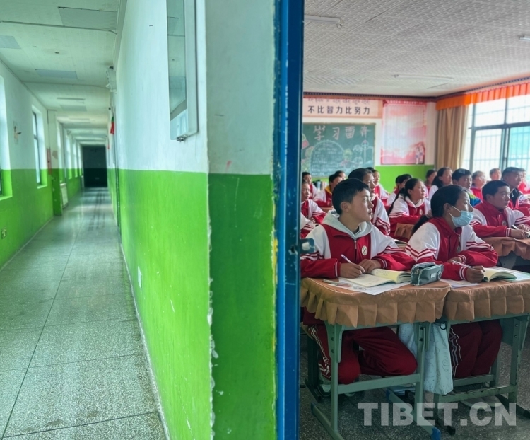 藏文老師尼瑪加措正在給初一七班的學(xué)生們講授薩迦班智達(dá)·貢嘎堅(jiān)贊的著作,里面涉及到很多為人處世、治學(xué)修身等內(nèi)容。畢業(yè)于西藏大學(xué)研究生學(xué)歷的尼瑪加措出生在西藏山南市隆子縣的一個(gè)農(nóng)民家庭,初到牧區(qū)給學(xué)生們授課時(shí)遇到方言不同交流不易和生活習(xí)慣差異等困難,但相處一段時(shí)間后看到牧區(qū)孩子們?nèi)绱藷釔鄄卣Z文課,他便毫不猶豫地選擇扎根在這里,一待便是12年。