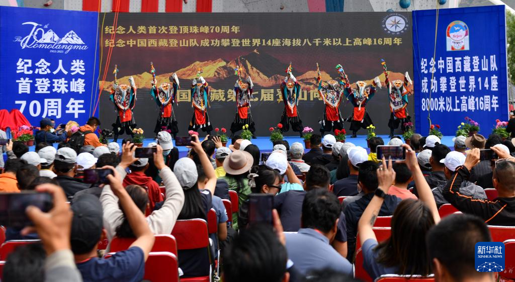 7月12日,藏戲演員在紀(jì)念人類登頂珠峰70周年暨第七屆中國(guó)西藏登山向?qū)Ч?jié)上進(jìn)行表演。新華社記者 晉美多吉 攝