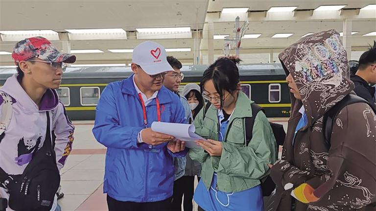 “到西部去、到基層去、到祖國和人民最需要的地方去?!?月24日,2023屆大學生西部計劃西藏專項志愿者陸續(xù)抵藏報到?,F(xiàn)場,共青團西藏自治區(qū)委員會組織了前幾屆志愿者在火車站接站。“我是從河南過來做志愿者的,在西藏已經(jīng)2年了,一直在自治區(qū)經(jīng)信廳上班。今天是過來接學弟學妹們的,幫助他們登記報到。”韓義凡說。中午11點左右,火車進站,志愿者們陸續(xù)前來報到?!斑@是我第一次來西藏,還是以志愿者的身份,我會好好工作,為西藏的發(fā)展作出自己的貢獻。”來自天津的田克正說。