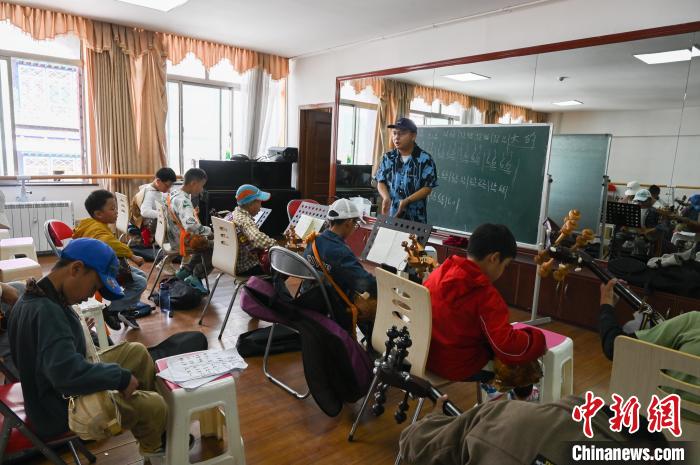 7月30日,在西藏自治區(qū)群藝館(區(qū)非遺中心),小學員們正在學習扎念琴。中新社記者 趙朗 攝