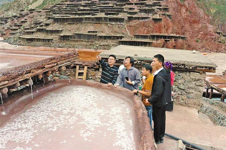 圖為芒康古鹽田考察團(tuán)調(diào)研加達(dá)鹽田。通訊員 劉哲含 攝
