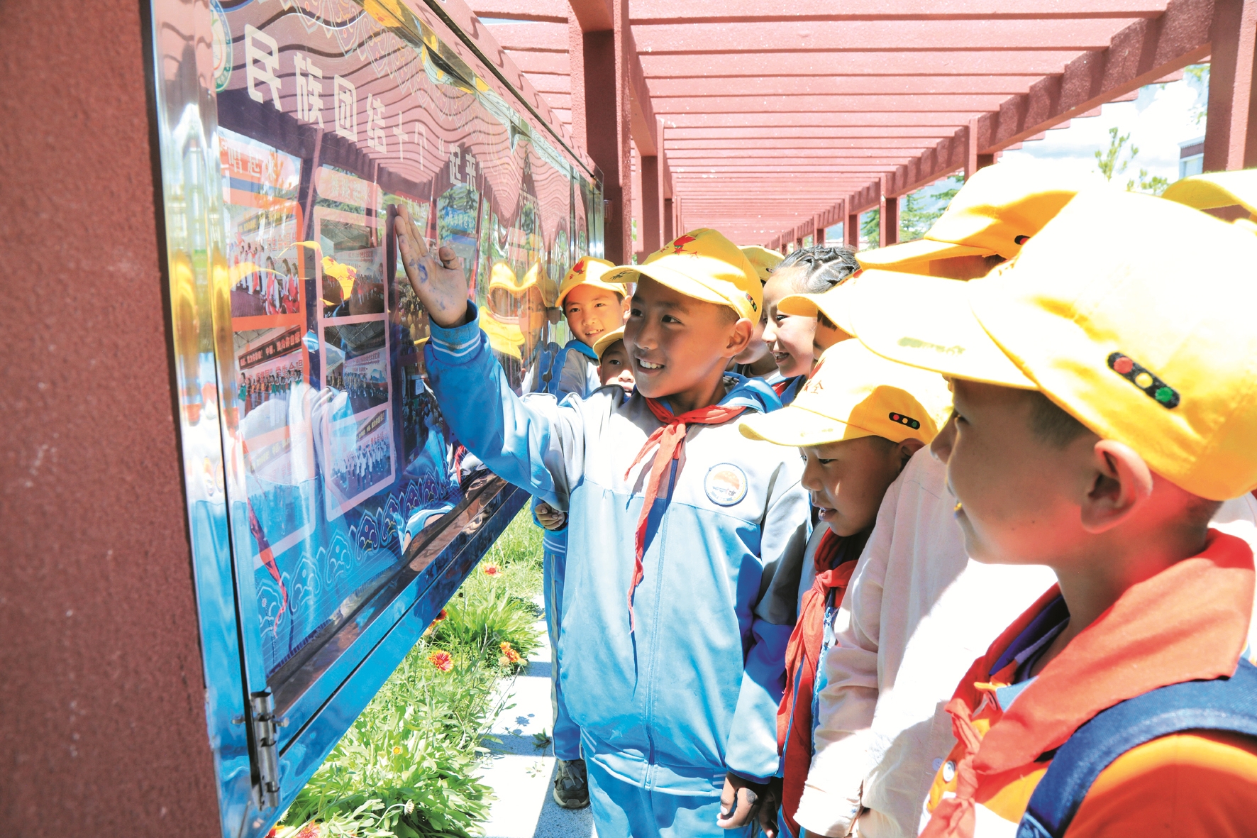 圖為墨竹工卡縣南京實(shí)驗(yàn)小學(xué)學(xué)生參觀“民族團(tuán)結(jié)教育主題公園”主題苑。通訊員 洛 克攝