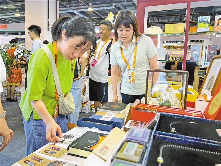 圖為觀眾在服貿(mào)會(huì)西藏展廳了解、挑選文創(chuàng)產(chǎn)品。記者 張姝 攝