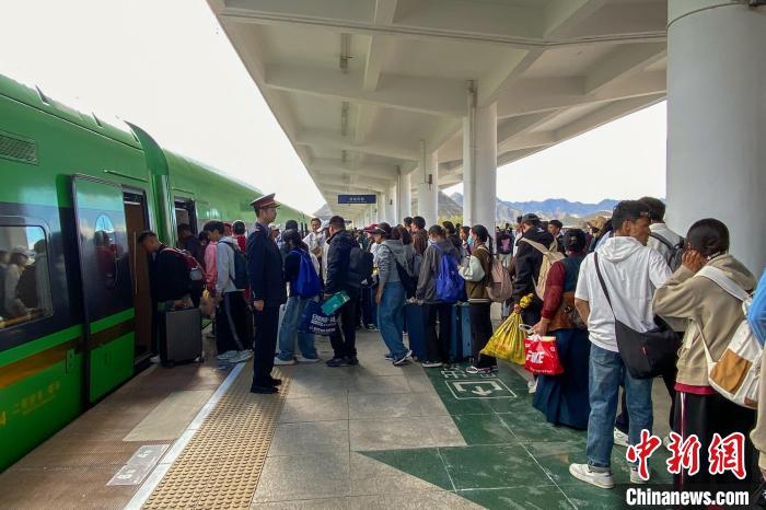 圖為暑運期間,旅客在日喀則火車站搭乘高原復(fù)興號動車組出行。日喀則火車站 供圖