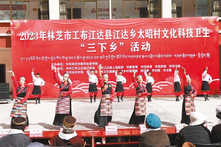 近日,由林芝市委宣傳部牽頭在工布江達(dá)縣江達(dá)鄉(xiāng)太昭村聯(lián)合舉辦林芝市文化科技衛(wèi)生“三下鄉(xiāng)”活動(dòng)。林芝市、工布江達(dá)縣兩級(jí)文藝工作者為現(xiàn)場(chǎng)群眾送上的《續(xù)寫盛世》《栢榭》等精彩節(jié)目和哈呼曲藝社帶來(lái)的語(yǔ)言類節(jié)目《學(xué)習(xí)國(guó)家通用語(yǔ)言文字》,深受群眾喜愛,節(jié)目中還穿插黨的二十大精神等相關(guān)知識(shí)問(wèn)答環(huán)節(jié),在場(chǎng)群眾積極參與,踴躍回答,現(xiàn)場(chǎng)氣氛十分活躍。
