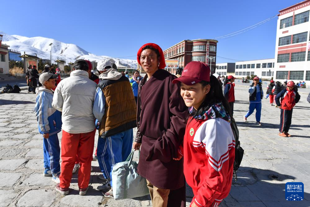 斯曲卓瑪?shù)母赣H來(lái)學(xué)校接女兒回家(11月15日攝)。新華社記者 晉美多吉 攝