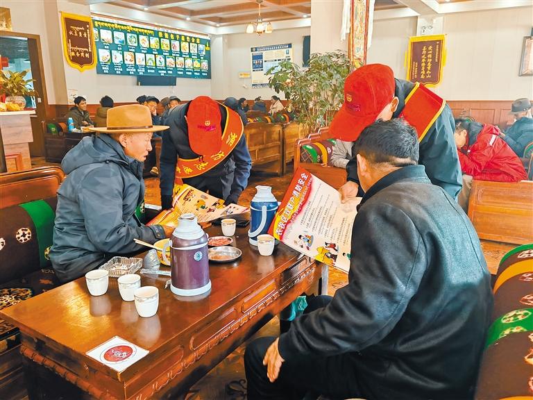 活動(dòng)中,隊(duì)伍各級(jí)積極制作藏漢雙語(yǔ)宣傳彩頁(yè)、海報(bào)、宣傳冊(cè)、宣傳袋等“消防禮包”80余萬(wàn)份,聯(lián)動(dòng)消防志愿者通過(guò)“走街串巷”的形式深入轄區(qū)“九小場(chǎng)所”、沿街門店、居民樓院等廣泛發(fā)放,并采取“面對(duì)面”宣傳講解、“一對(duì)一”互動(dòng)交流等方式,向廣大群眾傳授防火基本常識(shí),教授如何正確使用滅火器、如何撲救初起火災(zāi)、如何逃生自救等。在開(kāi)展宣傳的同時(shí),“火焰藍(lán)”和“志愿紅”還進(jìn)村入戶,幫助群眾查找火災(zāi)隱患,講解隱患存在的嚴(yán)重危害性,切實(shí)提高群眾的消防安全意識(shí)和自防自救能力。