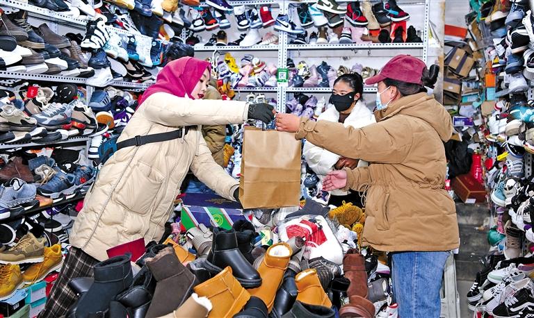 圖為在拉薩市城關(guān)區(qū)策門(mén)林社區(qū)回族店主蘇珊(左一)正在與藏族顧客交流。 記者 唐斌 攝