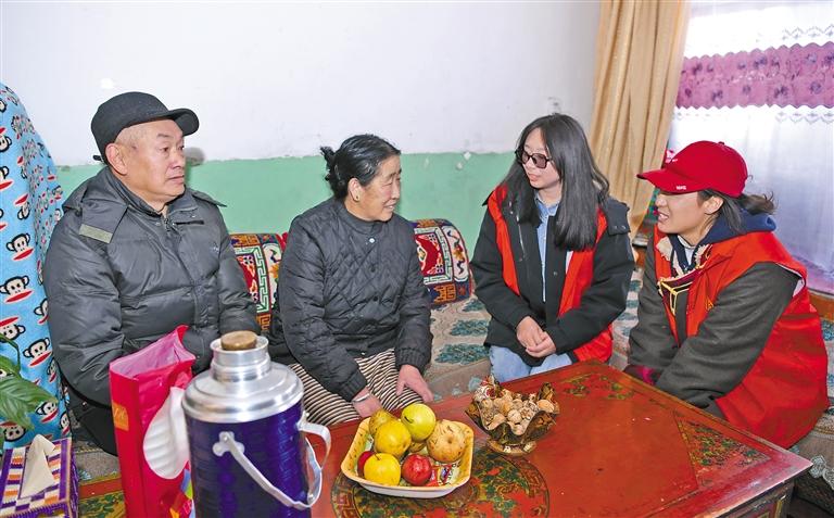 圖為拉薩市城關(guān)區(qū)策門(mén)林社區(qū)工作人員正在與轄區(qū)民族團(tuán)結(jié)家庭嘮家常。 記者 唐斌 攝
