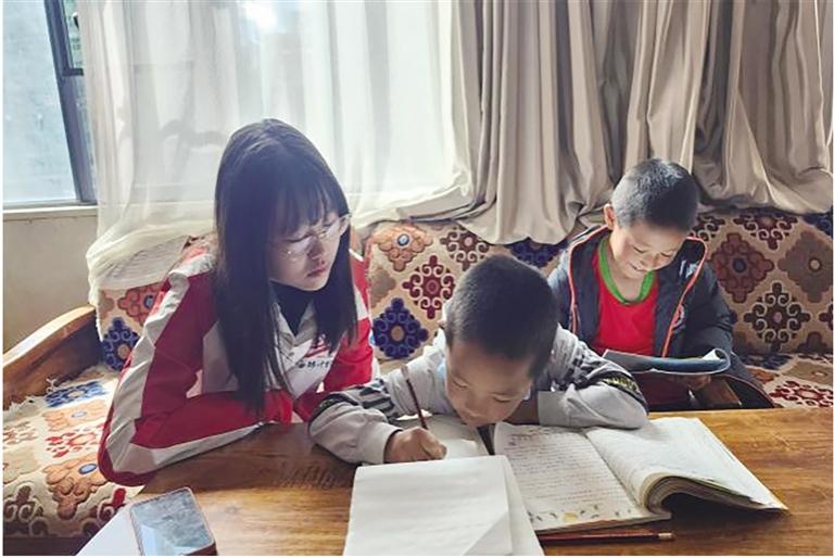 支教老師開展學(xué)業(yè)輔導(dǎo)、自護(hù)教育、思想引領(lǐng)、心理輔導(dǎo)等志愿服務(wù)