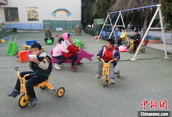 12月20日,青海省海東市民和縣中川鄉(xiāng)美一小學(xué)安置點(diǎn)內(nèi)兒童嬉戲。 馬銘言 攝