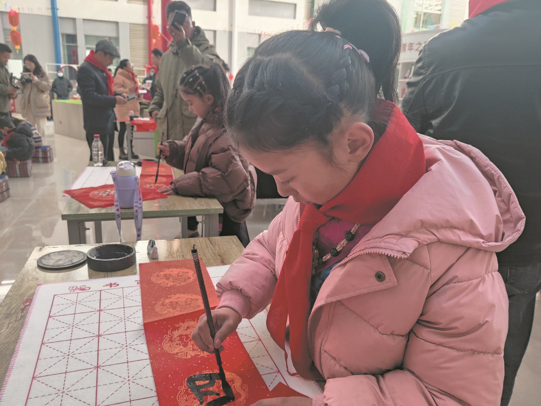 圖為小書法家們現(xiàn)場展示書法作品。拉薩融媒記者 余洋洋攝