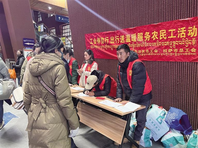 西藏拉薩市總工會為返鄉(xiāng)農(nóng)民工開展志愿服務(wù)