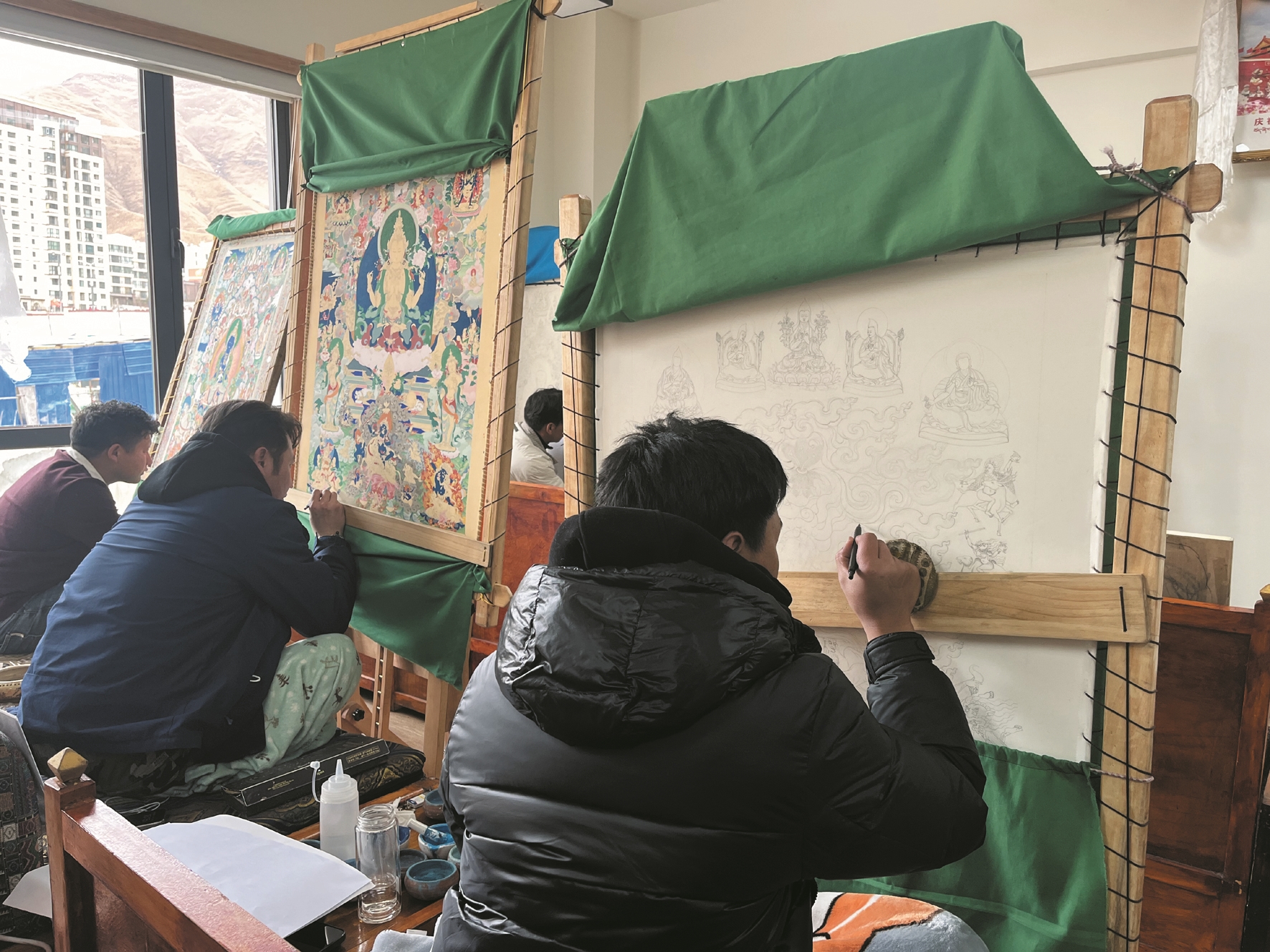 圖為學(xué)生們正在畫唐卡。拉薩融媒記者 莫瑞英攝