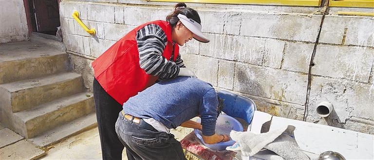 3月5日,拉薩市曲水縣達(dá)嘎鎮(zhèn)色達(dá)村干部為空巢老人提供清掃衛(wèi)生、洗頭等志愿服務(wù)。