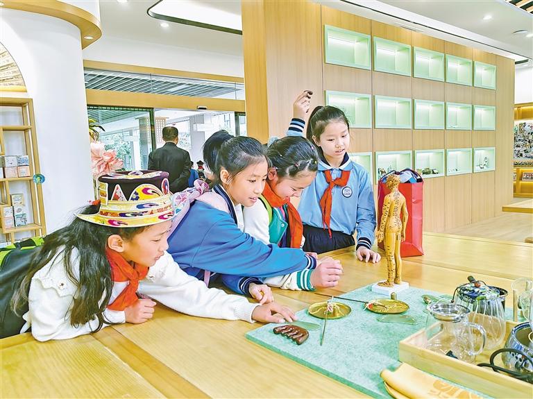 圖為冬令營活動(dòng)中,東莞、巴宜兩地青少年一同了解中醫(yī)藥文化。
