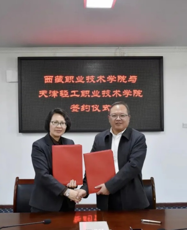 李云梅表示,天津輕工職業(yè)技術(shù)學(xué)院高度重視與西部院校開展合作,此前學(xué)院已與新疆和田、西藏昌都等地區(qū)職業(yè)院校建立了良好的合作關(guān)系并取得了豐碩的成果。天津輕工職業(yè)技術(shù)學(xué)院與西藏職業(yè)技術(shù)學(xué)院同為全國新能源行業(yè)產(chǎn)教融合共同體成員單位,具有良好的合作基礎(chǔ),希望通過此次《合作協(xié)議》的簽署和實(shí)施,進(jìn)一步整合學(xué)校資源,在天津輕工職業(yè)技術(shù)學(xué)院新能源等優(yōu)勢(shì)領(lǐng)域,集中力量為西藏職業(yè)技術(shù)學(xué)院提供支持,兩校攜手共同譜寫東西部院校合作新篇章。西藏職業(yè)技術(shù)學(xué)院黨委副書記、院長陳飛對(duì)天津輕工職業(yè)技術(shù)學(xué)院在東西部院校合作中作出的積極貢獻(xiàn)表示感謝,表示以此次簽約為契機(jī),共同推動(dòng)兩校在多個(gè)領(lǐng)域交流合作、協(xié)同發(fā)力,共同推動(dòng)協(xié)議內(nèi)容走深走實(shí),促進(jìn)自治區(qū)高等職業(yè)教育高質(zhì)量發(fā)展。