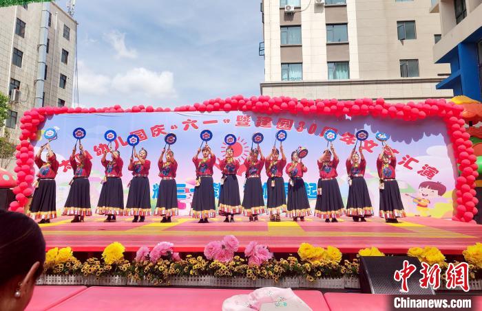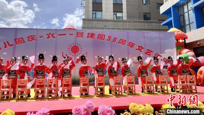 圖為拉薩市堆龍德慶區(qū)小太陽幼兒園能歌善舞的孩子們表演節(jié)目。宋建英 攝