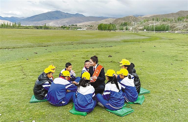 日前,曲松縣人民檢察院的檢察官在下落國家濕地公園舉行“法治小課堂”,為學(xué)生沉浸式講授濕地保護領(lǐng)域公益訴訟典型案件及政策法規(guī)。記者 丹增平措 攝