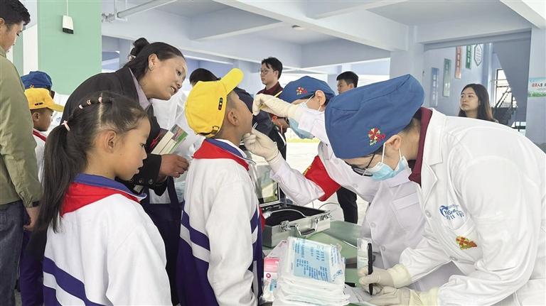 醫(yī)生為孩子們檢查牙齒。文/圖 記者 婁夢(mèng)琳