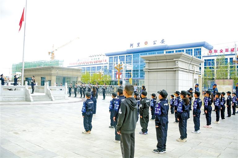 圖為警娃們?cè)诎⒗锏貐^(qū)公安處參加升國(guó)旗儀式。