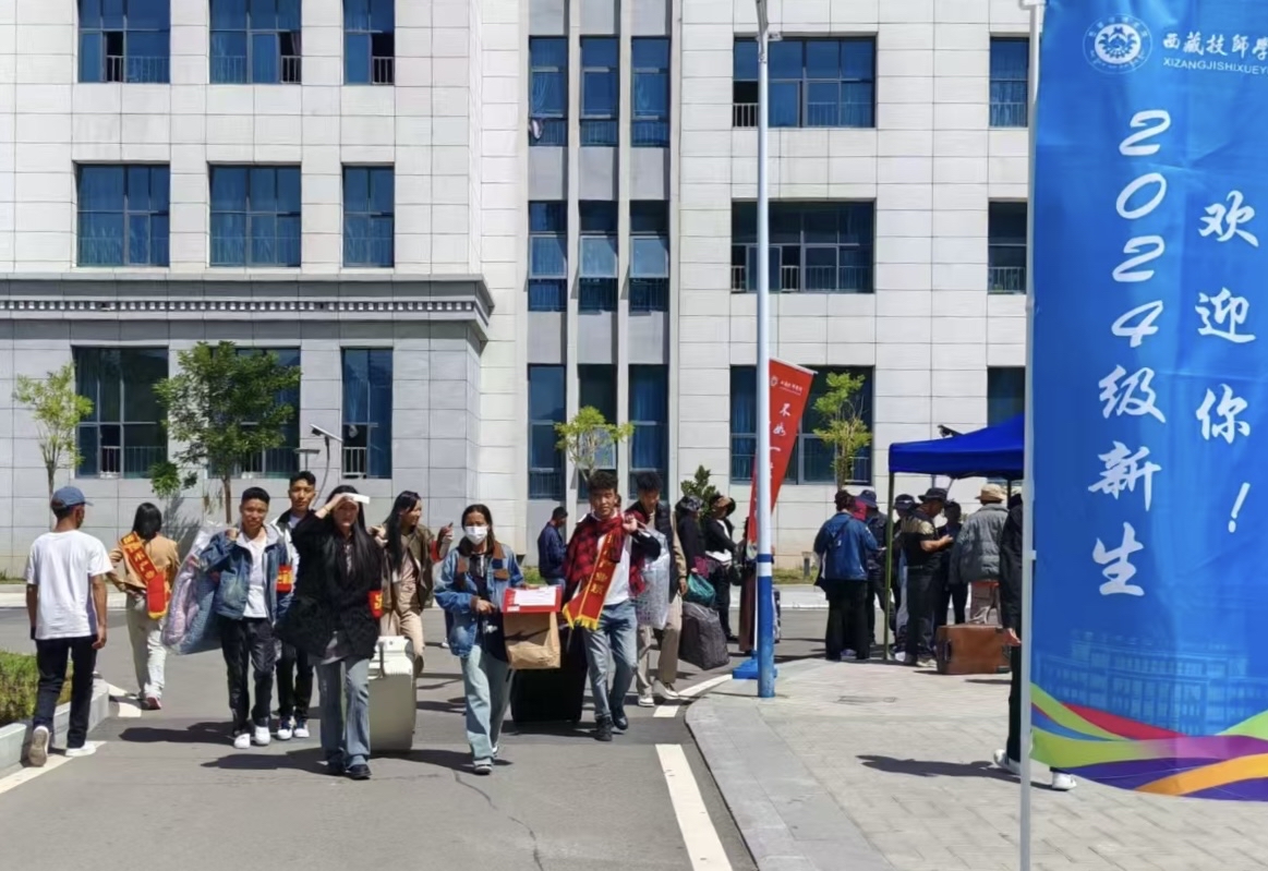 在西藏技師學(xué)院校園里,隨處可見“歡迎新同學(xué)”的標(biāo)語和展板,校園內(nèi)還設(shè)置了立體合影展臺(tái)供學(xué)生留影,營造出了濃濃的暖心氛圍。學(xué)生和家長們帶著大包小包的行李,秩序井然地進(jìn)入校園,找到所錄取專業(yè)報(bào)到點(diǎn)前完成入學(xué)手續(xù),各班班主任都等候在報(bào)到點(diǎn),耐心地回答學(xué)生們的疑問、專業(yè)學(xué)習(xí)情況、體檢和助學(xué)金的申請(qǐng)等問題。