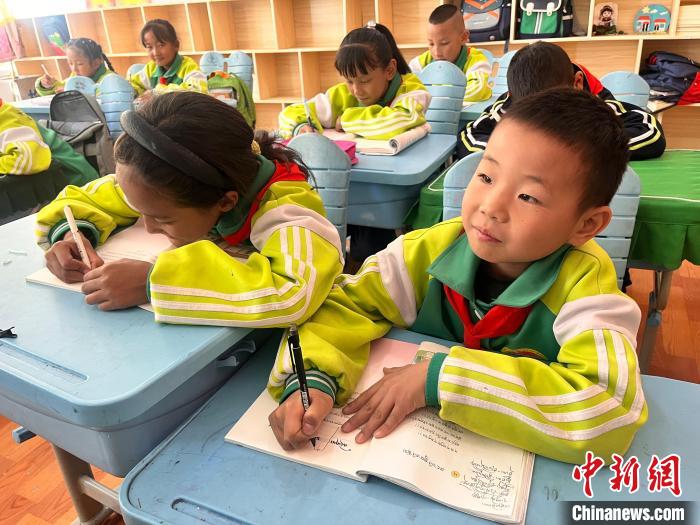 與此同時(shí),四年級(jí)2班的漢族學(xué)生劉念恩正在上藏語(yǔ)文課,他抄寫(xiě)有些慢,同桌的女生立刻用筆幫他找到對(duì)照位置?!拔覀儼嘀挥形乙粋€(gè)漢族,我也要上藏語(yǔ)文課,同學(xué)們和我關(guān)系非常好,我們經(jīng)常一起踢足球?!眲⒛疃髡f(shuō)。