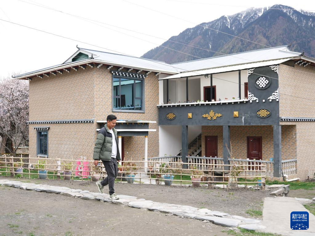 洛松頓珠從自家民宿前經(jīng)過(4月2日攝)。新華社記者 丁汀 攝