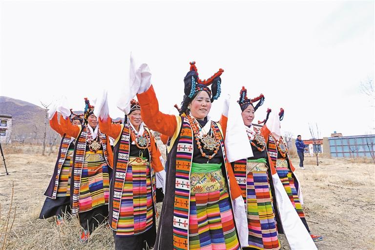 “如今,這支隊(duì)伍已發(fā)展到20多名成員,都是當(dāng)?shù)厝罕?。藝術(shù)隊(duì)經(jīng)常受邀參加各種大小晚會、重要節(jié)日演出和赴區(qū)內(nèi)外非遺展演等,其影響力和傳播力不斷提升,特別是甲瑪諧欽《和親路》受到廣泛歡迎?!奔赚斷l(xiāng)工作人員德吉卓嘎說。