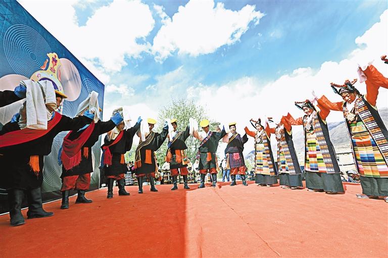 甲瑪鄉(xiāng)諧欽隊(duì)在非遺巡展活動上表演諧欽。