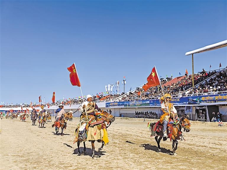 圖為那曲恰青賽馬節(jié)暨第三屆“鄉(xiāng)村振興 那曲奮進(jìn)”活動(dòng)開(kāi)幕式場(chǎng)景。
