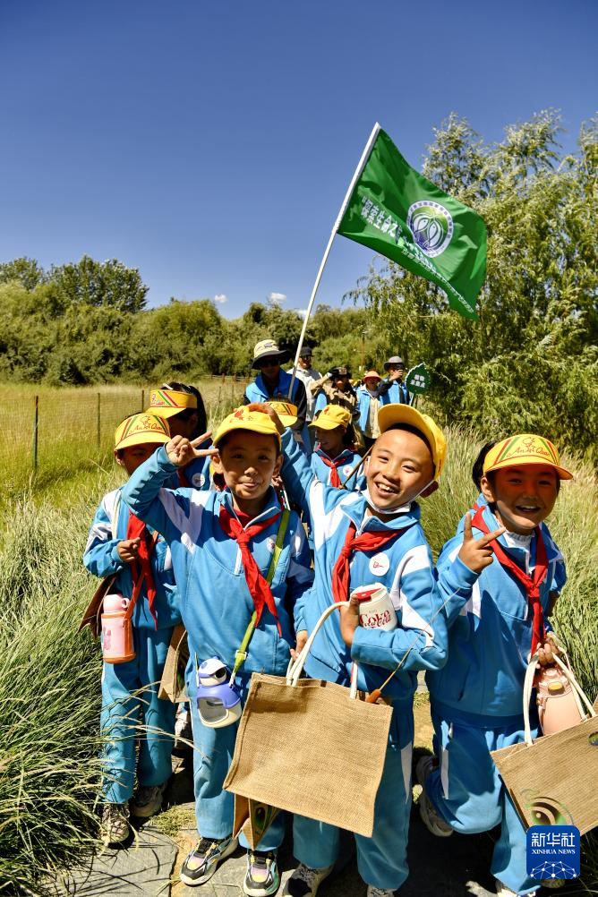 8月15日,拉魯小學(xué)的學(xué)生們在拉魯濕地國家級自然保護區(qū)開展生態(tài)科普研學(xué)活動。新華社記者 張汝鋒 攝 ??