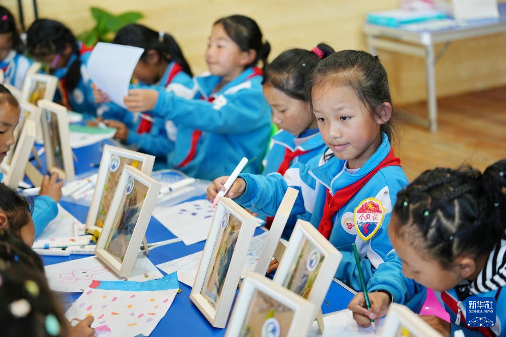 8月15日,拉魯小學(xué)的學(xué)生在拉魯濕地國家級自然保護區(qū)管理局科普小教室里進行生態(tài)主題繪畫。新華社記者 張汝鋒 攝 ??