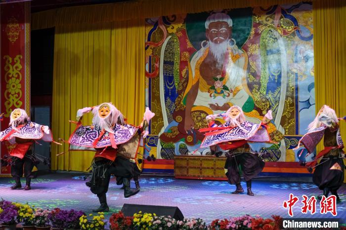 9月7日晚,西藏山南扎西曲登社區(qū)的村民們以藏戲開場,迎接游客前來觀看。中新社記者 江飛波 攝
